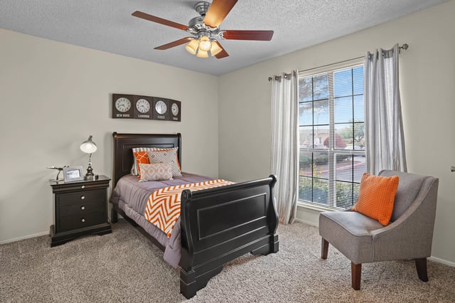 In our High Ridge apartment community in East El Paso, you’ll find 1- and 2-bedroom apartments offering four distinct floor plans to suit your lifestyle. These floor plans were meticulously designed to blend style and comfort. We offer cozy 1-bedroom apartments and spacious 2-bedroom apartments, all featuring luxury amenities like large closets, a private balcony, and upgraded fixtures.